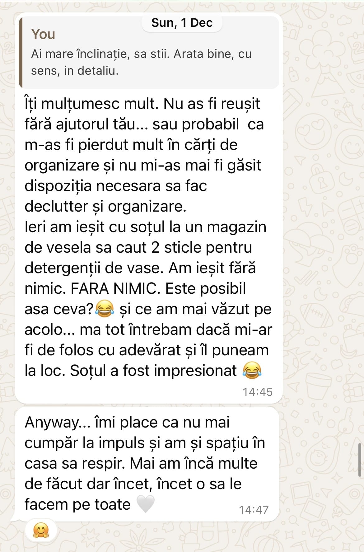 Și, deși îți spui că poate nu ești suficient de organizata, de disciplinata sau că ar trebui „să te ții mai bine de treabă”, adevărul este altul: modul în care întreții casa ta nu definește valoarea ta ca om. Nu ești mai puțin capabil, leneș sau dezordonat.